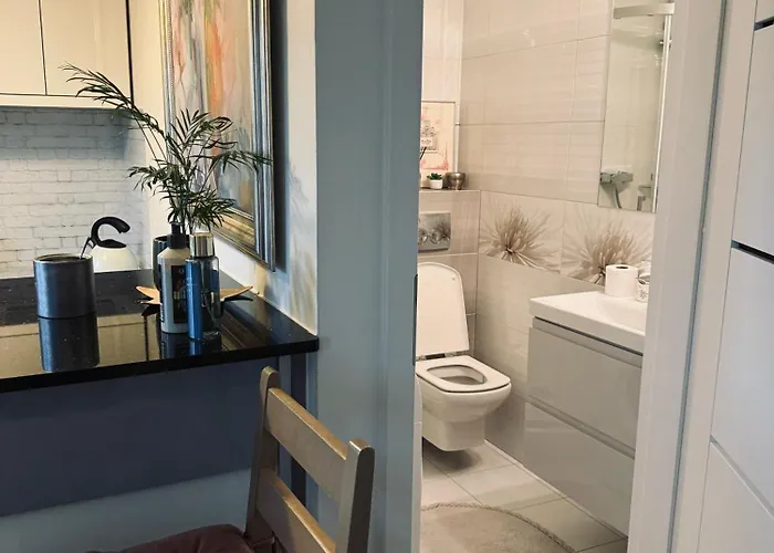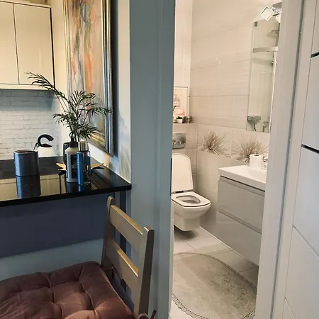 The 28 m² Przytulne Studio Na Sadybie Warsaw features convenient proximity to such city attractions as the Sadyba Best Mall, situated around 5 minutes' walk away. Guests can make use of Wi-Fi for both business and leisure purposes.